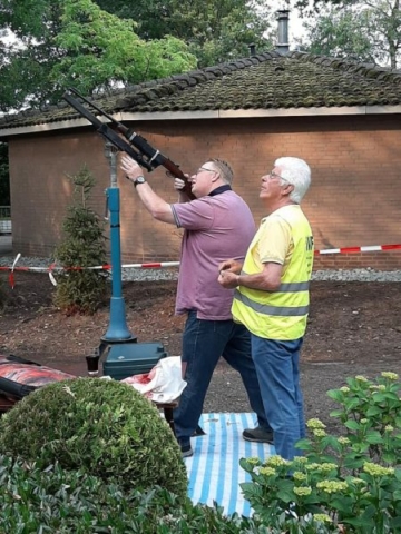 Na het schot van Andre Jansen stond de volgende schutter klaar om te schieten, toen plotseling het laatste deel van de vogel er afviel.